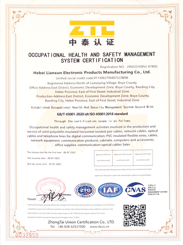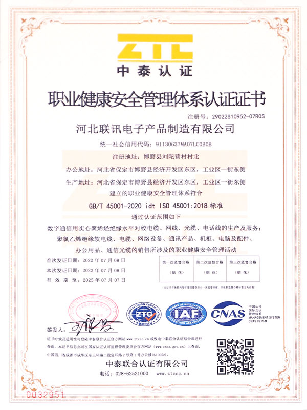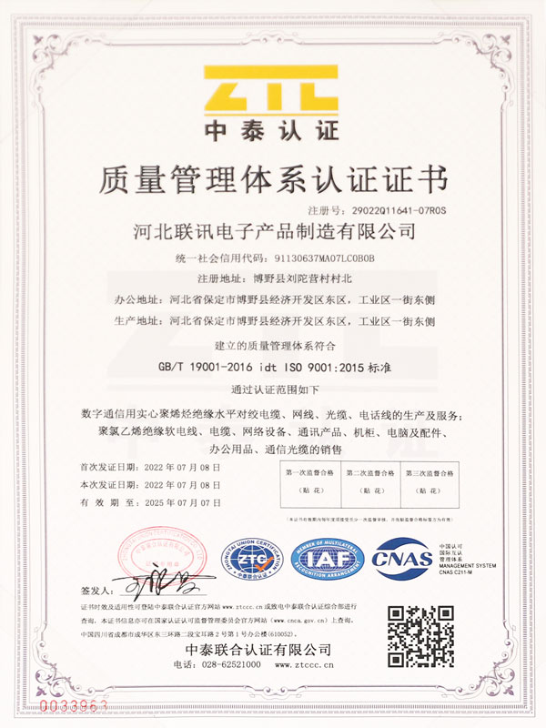 公司成立于2015年,位于保定市博野縣經(jīng)濟(jì)開發(fā)區(qū),交通便利,毗鄰雄安新區(qū),地理位置優(yōu)越,占地80000余平方米,公司已形成從原材料生產(chǎn)到產(chǎn)品銷售一條龍的生產(chǎn)流水線,公司不斷引進(jìn)生產(chǎn)設(shè)備和檢測設(shè)備,擁有串聯(lián)生產(chǎn)線。并逐步建立了內(nèi)控制度健全、風(fēng)險(xiǎn)管控到位、責(zé)任落實(shí)明確、運(yùn)行相互制衡的管理體系。公司目前已通過ISO9001 質(zhì)量體系認(rèn)證、14001環(huán)保認(rèn)證、 18001 職業(yè)健康安全認(rèn)證、CE認(rèn)證,獲得泰爾的檢測報(bào)告、ROHS、REACH、FCC等證書,公司從產(chǎn)品品質(zhì)控制著手,建立了完善的產(chǎn)品生產(chǎn)標(biāo)準(zhǔn)體系和產(chǎn)品質(zhì)量檢驗(yàn)標(biāo)準(zhǔn)體系,相關(guān)產(chǎn)品均已通過國家行業(yè)標(biāo)準(zhǔn)測試。公司在北京、長春、沈陽、哈爾濱、濟(jì)南、煙臺、鄭州、長沙、西安、石家莊、唐山、保定、廊坊等多地設(shè)有辦事處,并與多個(gè)國家建有長期貿(mào)易合作關(guān)系。我們擁有豐富的產(chǎn)品和服務(wù)資源,為各地區(qū)、各行業(yè)的用戶提供可靠的應(yīng)用及優(yōu)質(zhì)的服務(wù)。公司2017年度被評選為河北省網(wǎng)絡(luò)發(fā)展促進(jìn)會(huì)副會(huì)長單位,公司旗下的“唐人通信”位列2021年度網(wǎng)線行業(yè)十大品牌。